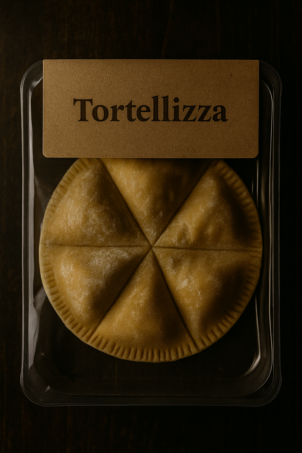 Each Tortellizza is packaged in a compact, vertical-display box engineered for maximum shelf impact and efficient freezer utilization.
